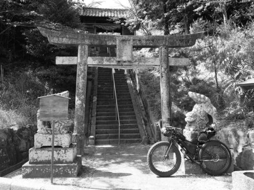 十六島湾と雲州平田駅の間、先に見た宇加神社よりも十六島湾寄りの奥宇賀に鎮座する奥宇賀神社。境内は山というより小高い丘の上にあり、鳥居の後方にある石段を上がり隋神門をくぐると広前に出る。正面の拝殿まで85歩、まずは参拝。静かな境内で、拝殿右側…